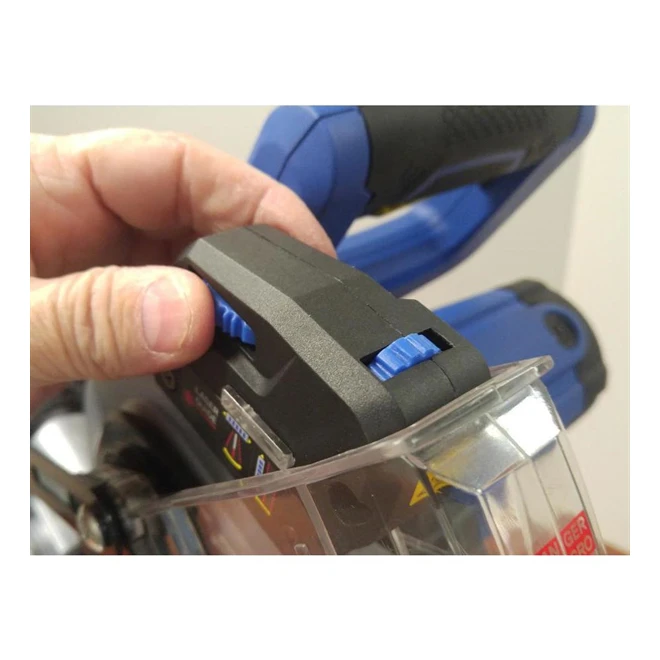 - Tool-less adjustable upfront mounted laser guide system projects accurate pre-cutting line for precise alignment